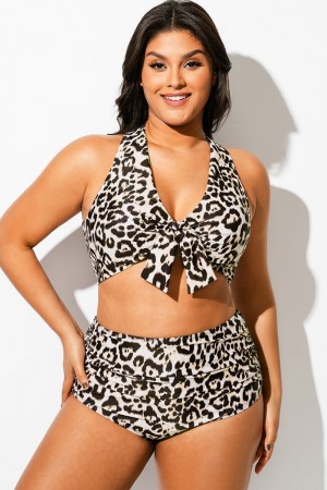 Top De Bikini Corto Anudado Con Estampado De Leopardo Oscuro26,99 €
