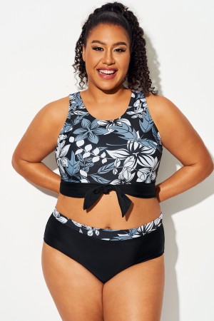 Top de bikini corto anudado con estampado floral verde de talla grande27,99 €
