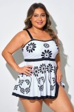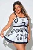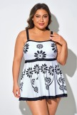 Top de tankini negro con estampado floral y tirantes ajustables
