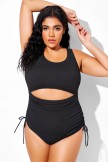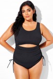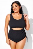 Traje de baño de una pieza negro con aberturas delanteras y traseras