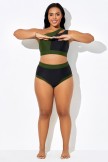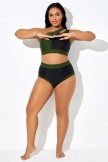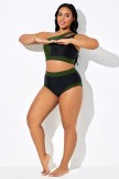Braguita de bikini negra de cintura alta con ribete verde