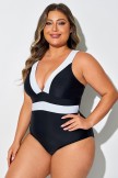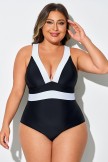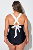 Traje de baño de una pieza con lazo en la espalda y bloques de color blanco y negro