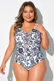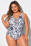 Traje de baño de una pieza elegante con estampado floral en blanco y negro