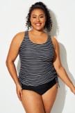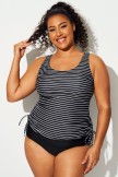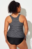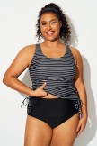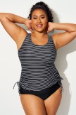 Top de tankini con cordón ajustable y estampado de rayas blancas y negras
