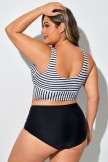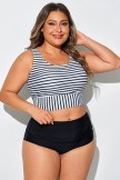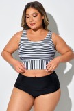 Top de bikini de tirantes anchos a rayas blancas y negras