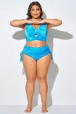 Top de Bikini Negro con Volante de Encaje sin Hombros