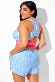 Top De Bikini De Patchwork Con Cuello Redondo Y Flores Azules