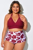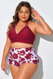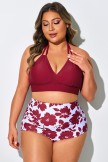 Traje de Baño Corto Rojo Vino Cintura Alta