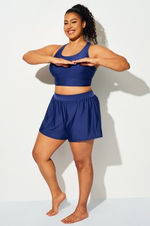 Pantalones Cortos De Cintura Media Azul Océano De Talla Grande Para Mujer32,99 €