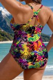 Traje de baño de una pieza con estampado de hojas de palma de colores