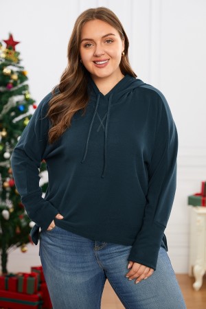 REBAJASudadera Negra con Cuello Redondo de Manga Larga Suelta Informal