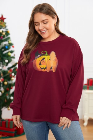 REBAJASudadera Holgada de Manga Larga con Calabaza Gato Estampado de Halloween