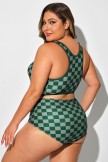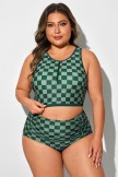 Top de bikini con cremallera frontal y estampado de cuadros verdes