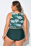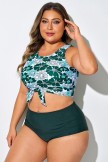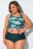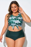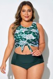 Top de bikini corto anudado con estampado floral verde y blanco