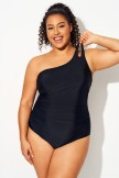 Traje de baño de una pieza con un solo tirante y diseño hueco.