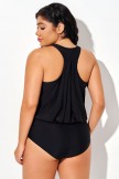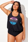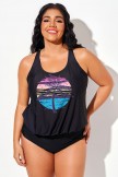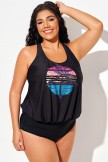 Top tankini tipo blusón con espalda nadadora y tirantes anchos con estampado de isla