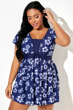 Elegante vestido de baño de manga corta con estampado de hibisco para mujer38,99 €