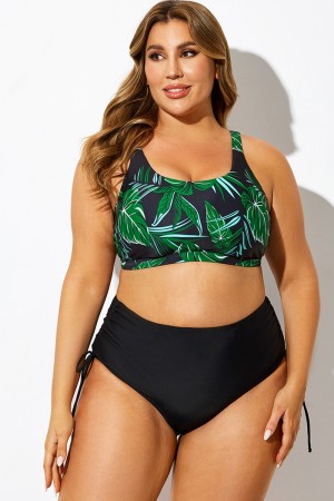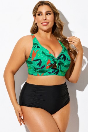 Top de bikini con cuello en V y estampado de plantas verdes22,99 €