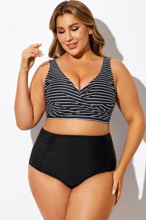 Top de bikini con cuello en V y espalda anudada a rayas de talla grande24,99 €