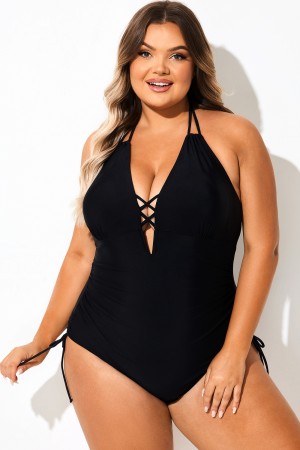 Traje de baño de una pieza con cuello halter, color negro liso, talla grande33,99 €