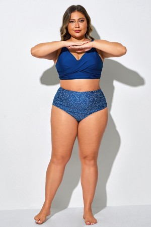 Braga De Bikini De Cintura Alta Azul Con Lunares