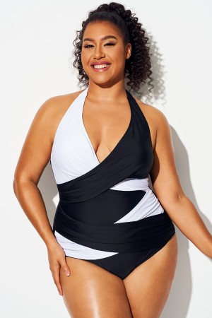 Traje De Baño De Una Pieza Con Cuello Halter, Elegante, Con Bloques De Color Y Talla Grande42,99 €