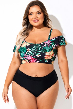 Top De Bikini Con Volantes Y Estampado Floral Verde Con Hombros Descubiertos28,99 €