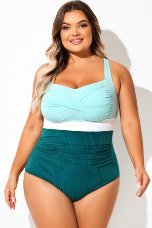 Traje de baño de una pieza ajustado con giro frontal verde claro33,99 €