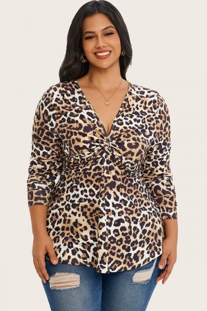 Camiseta de manga 3/4 con cuello en V y nudo torcido con estampado de leopardo20,99 €