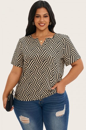 • Camiseta a rayas con cuello de cerradura de talla grande