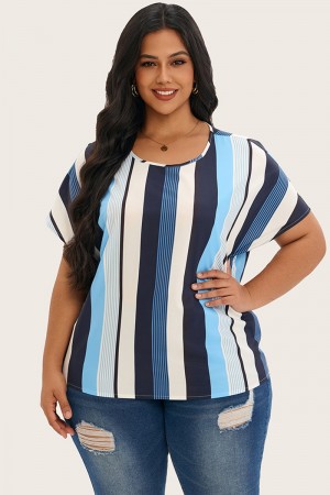 Blusa holgada de cuello redondo y manga murciélago a rayas azules13,99 €