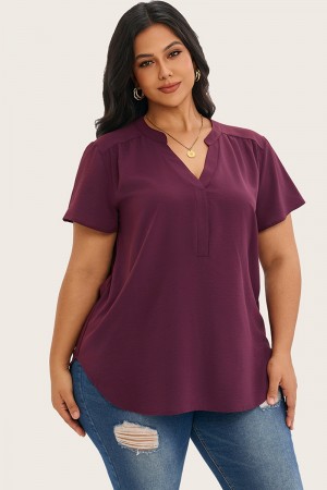 REBAJATop Blanco Básico de Talla Grande V-cuello con Manga Corta
