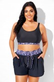 Top De Bikini Con Paneles Florales Negros De Talla Grande