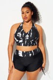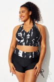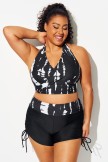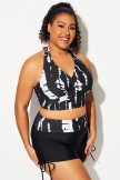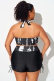 Top De Bikini Con Bloques De Color Blanco Y Negro De Talla Grande