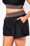 Pantalones cortos de talla grande, coloridos y negros, con bolsillos.