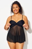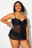 Top Tankini Con Superposición De Malla Frontal Y Nudo De Talla Grande
