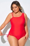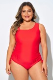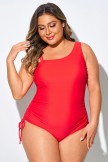Traje de baño enterizo rojo de talla grande con escote asimétrico