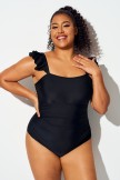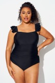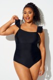 Traje De Baño De Una Pieza Con Volantes Negros Liso De Talla Grande