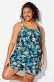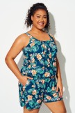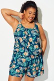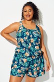 Traje De Baño De Una Pieza Con Bolsillos Y Estampado De Flores Tropicales De Talla Grande