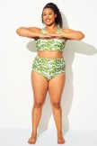 Parte Inferior De Cintura Alta Verde Tropical De Talla Grande