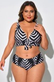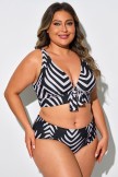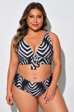 Top De Bikini Con Cuello En V Y Rayas De Cebra De Talla Grande