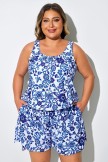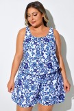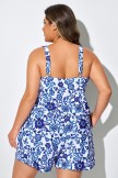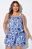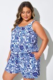 Traje de baño de una pieza con bolsillos florales en azul porcelana