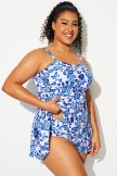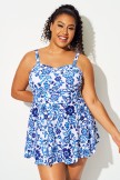 Vestido de baño de cintura imperio fruncido con estampado floral azul porcelana