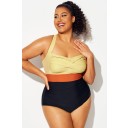 Traje de baño de una pieza ajustado con frente torcido y contraste de bloques de color