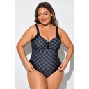 Traje De Baño De Una Pieza Con Cuello En V Y Estampado De Cuadros Negros