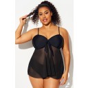 Top Tankini Con Superposición De Malla Frontal Y Nudo De Talla Grande