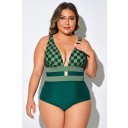 Traje De Baño De Una Pieza Con Escote En V Y Corte De Cuadrados Verdes