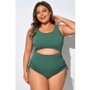 Traje De Baño Verde Oscuro Con Aberturas Delanteras Y Traseras De Talla Grande