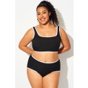 Top De Bikini Negro Con Escote Cuadrado Y Ribete Blanco