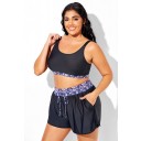 Top De Bikini Con Paneles Florales Negros De Talla Grande